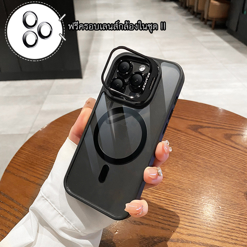 เคสใสอะคริลิคกันกระแทกพรีเมียม Hybrid Shield พร้อม Magsafe และ ขาตั้งแบบครอบเลนส์ (แถมตัวครอบเลนส์กล้องในชุด) |